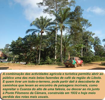 forte e de sabor intenso, mas imperdível foi mesmo o passeio pelos caminhos da fazenda, rolando alguns quilómetros entre alamedas de palmeiras enormes, geometricamente alinhadas ao longo das bermas, fornecendo a necessária sombra para proteger o cafezal do sol. Curiosamente, talvez não tenha sido por acaso que o encarregado da fazenda veio do Brasil, ou o maior país lusófono não seja o líder mundial incontestado na produção de café desde que há registos , já lá vão cerca de um século e meio!
